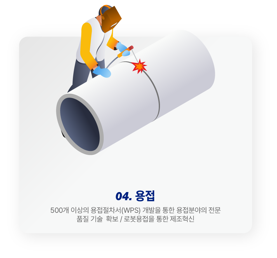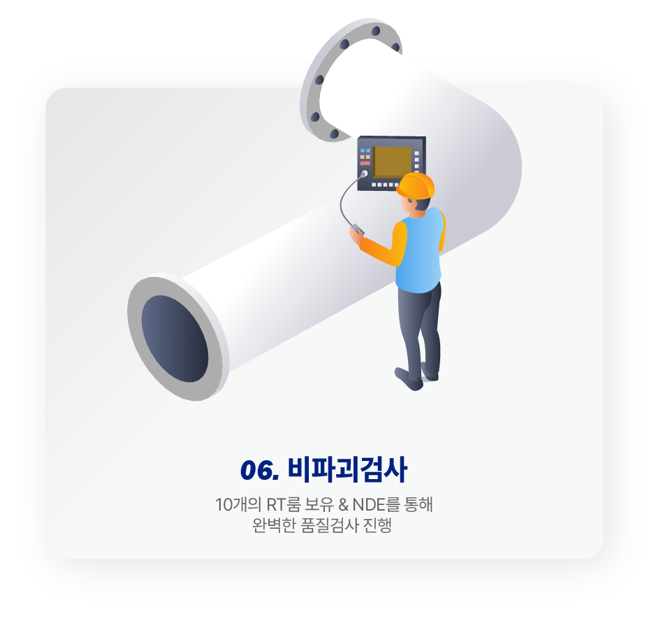 ASME, DNV, KEPIC 및 기타 국제 및 국내 인증 기준에 따라 당사는