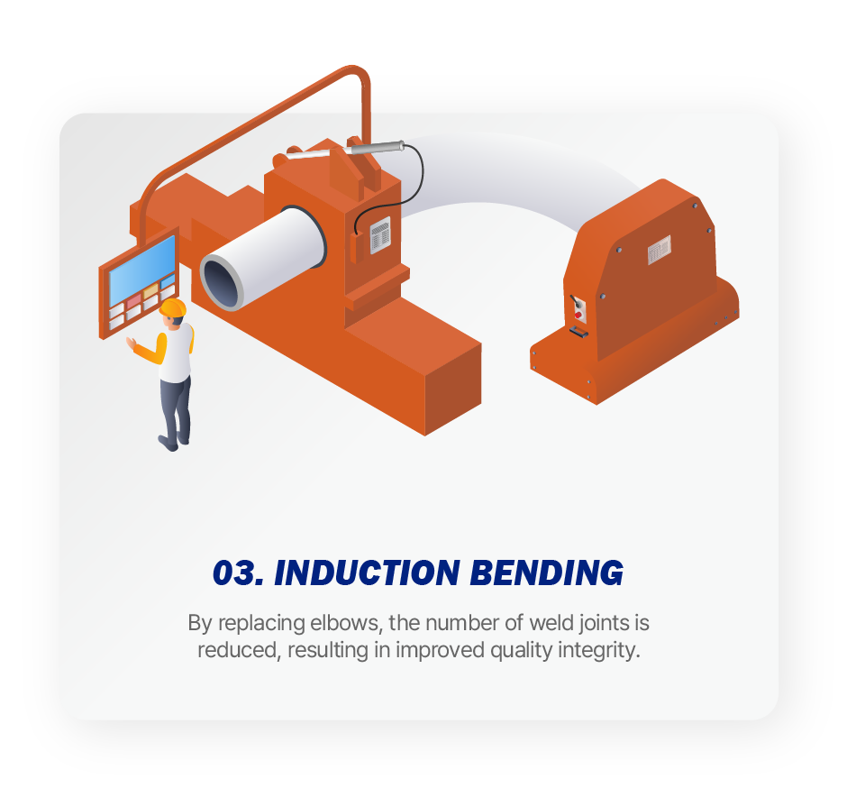 Under ASME, DNV, KEPIC, and other international and domestic certification standards, we operate a top-tier, facility for Piping spool & Induction Bend. Every step of the manufacturing process is conducted under strict quality control.